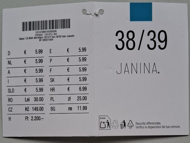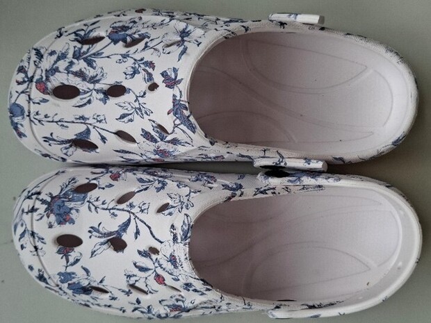 A KiK Textilien und Non-Food GmbH recolhe o seguinte produto: Tamancos femininos estampados, WGR 899, número do artigo: 1201473 P255043, preço reduzido 3,99 euros.